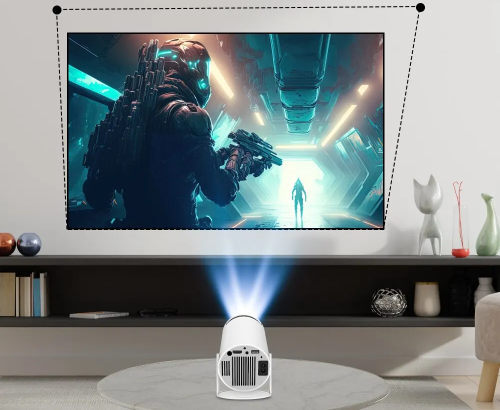 Портативный проектор оснащен автоматической и ручной коррекцией изображения, позволяя наслаждаться просмотром даже на неровных поверхностях.